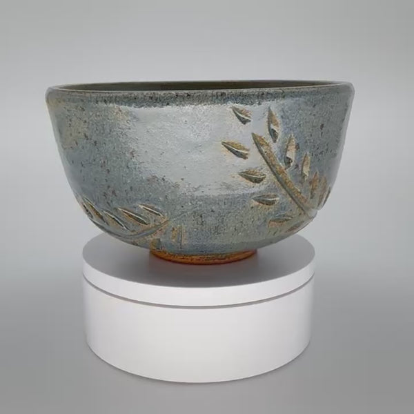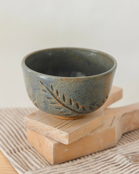 Hand Carved Blue Stoneware Bowl – One of a Kind Ceramic Bowl for Everyday Use | Bowl No. 3