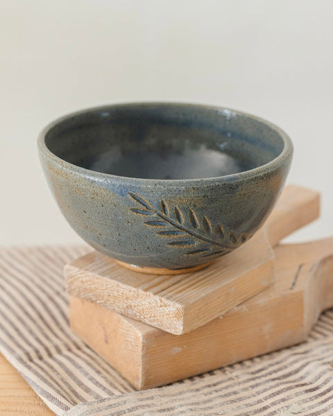 Hand Carved Blue Stoneware Bowl – One of a Kind Ceramic Bowl for Everyday Use | Bowl No. 4